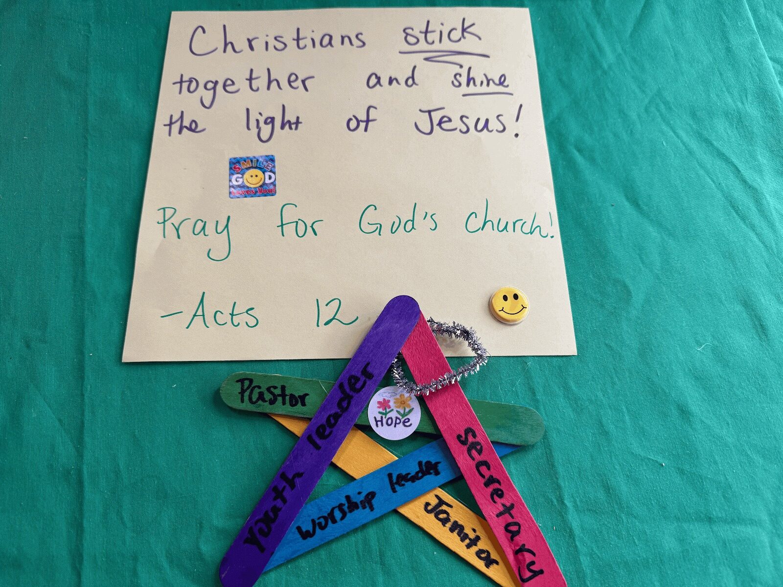 These crafts recall the story of Peter, and his miraculous escape from prison in Acts chapter 12. This account reminds us that God can do anything, prayer is powerful, and the church is an important part of the Lord’s work, with all believers playing a part in it. A “Prayer Chain Shackles” craft can be used to remember prayer requests, and potentially to reenact the jail break. A “Stick Together and Shine Star” considers the church body and our role to shine the light of Christ in a dark world. Let’s get crafty!