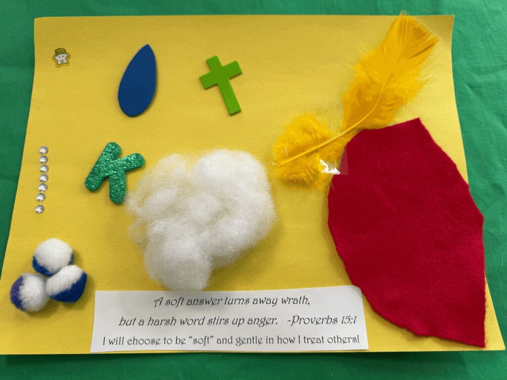 These crafts focus on gentleness and what it means for us as Christians. Understanding gentleness reminds us that it’s important to treat people and things with care, but that we can be strong even while we are gentle and soft. An “Earthquake, Wind, and Fire Wheel” celebrates the story of Elijah on Mt. Horeb, which reminds us of God’s gentleness. A “Soft and Tender Collage” includes tactile items that literally show softness. Let’s get crafty!