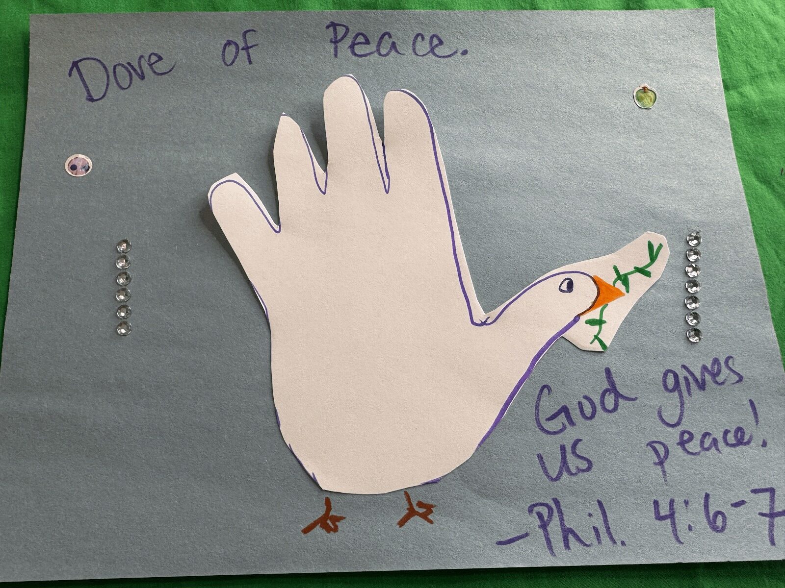 - Decorate the handprint to look like a dove, adding eyes, beak, etc.